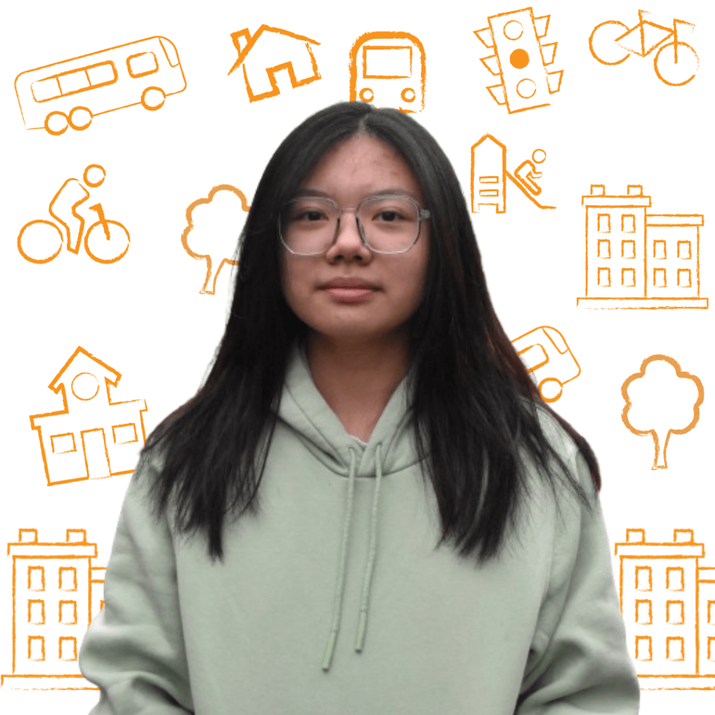 Alicia is a first-year student at the University of Waterloo with the long-term goal of becoming an urban planner. Recognizing that youth will inherit the cities we design, she is dedicated to involving them in creating equitable and sustainable urban spaces. She also has an interest in planning for efficient public transportation that contributes to urban sustainability and equity. In her free time, she likes playing Dungeons and Dragons and going on nature walks.