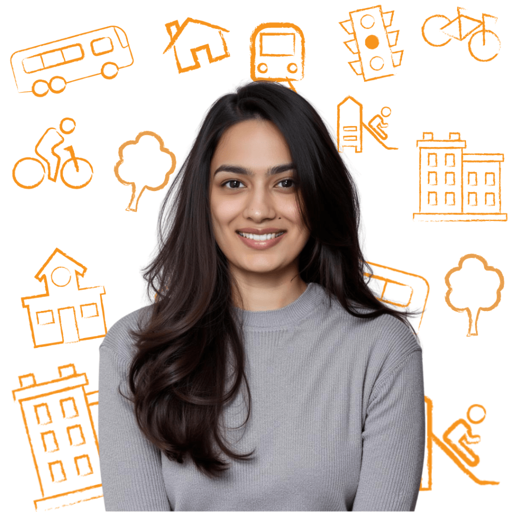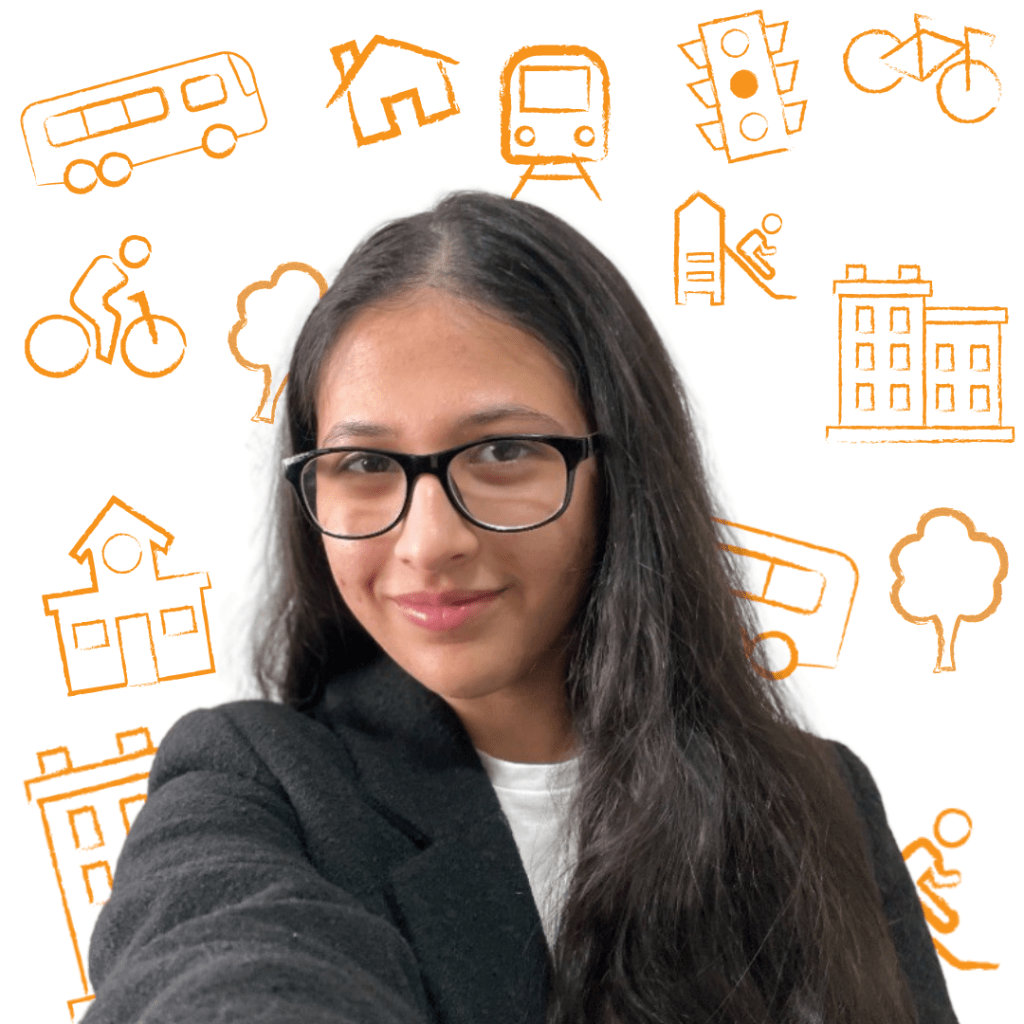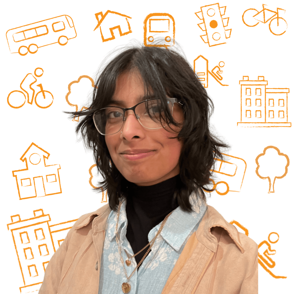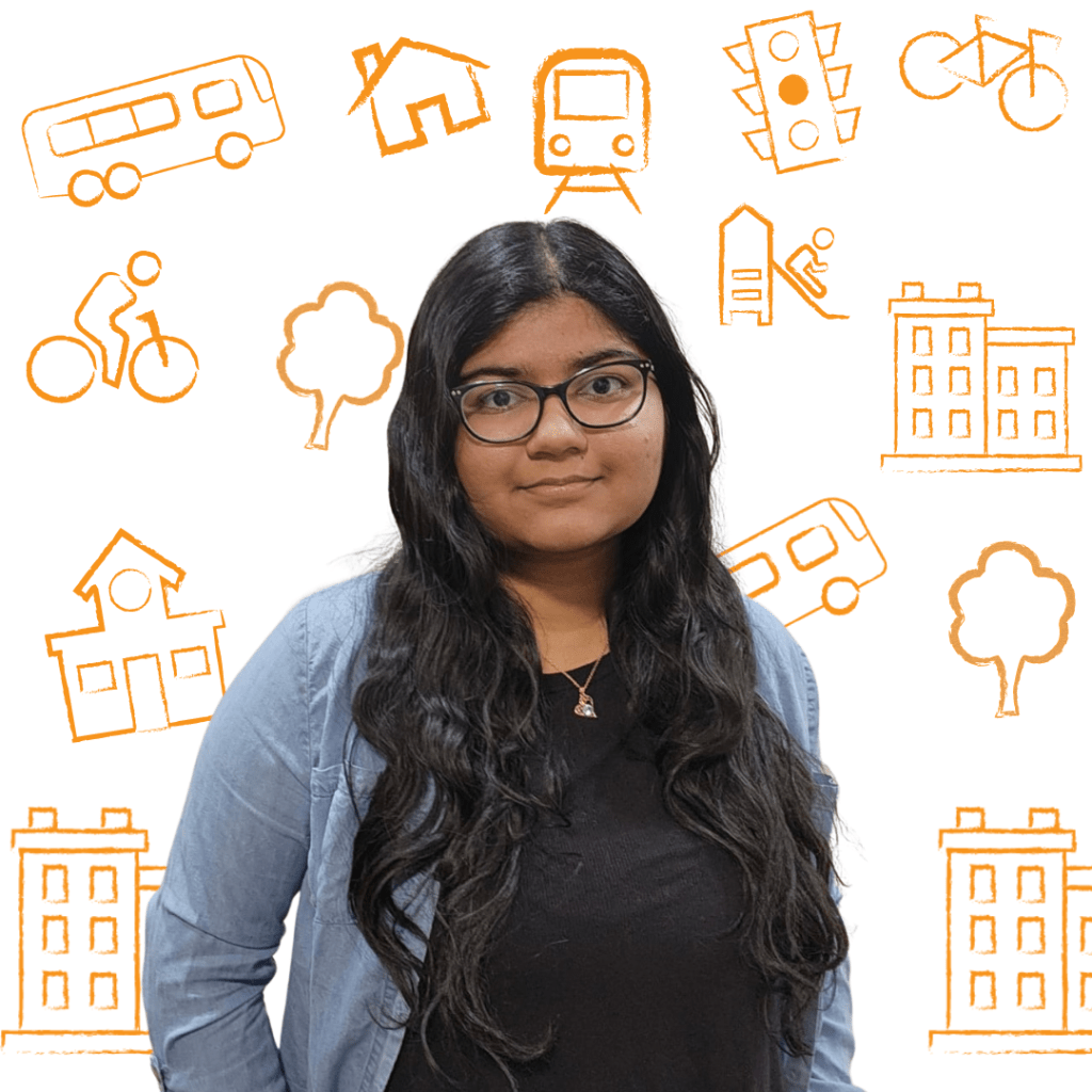 Dhenu Patel is a fourth-year Urban and Regional Planning student at Toronto Metropolitan University, specializing in Transportation Planning and Design with a minor in Politics. She is passionate about building accessible, sustainable communities and enjoys working at the intersection of policy, law, and community engagement within the planning context. Outside of her studies, Dhenu loves going to concerts, traveling, and taking on creative DIY projects.