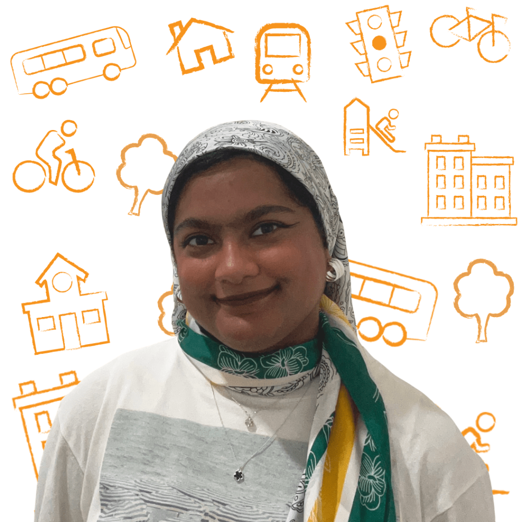 Sabaa is pursuing a degree in Urban and Regional Planning at Toronto Metropolitan University, where she explores how inclusive design and community engagement can build stronger and more connected cities. She is passionate about involving youth in city-building conversations and believes their perspectives are key to creating equitable and forward-thinking communities. Drawing from her experiences in planning, mentoring, and facilitation, Sabaa approaches every project with curiosity, collaboration, and a commitment to social sustainability. She hopes to continue shaping spaces that reflect the diversity, creativity, and resilience of the people who inhabit them.