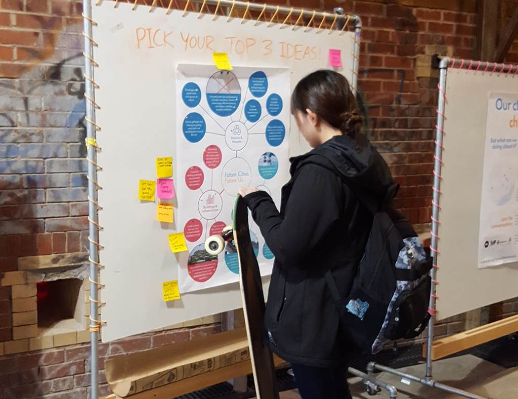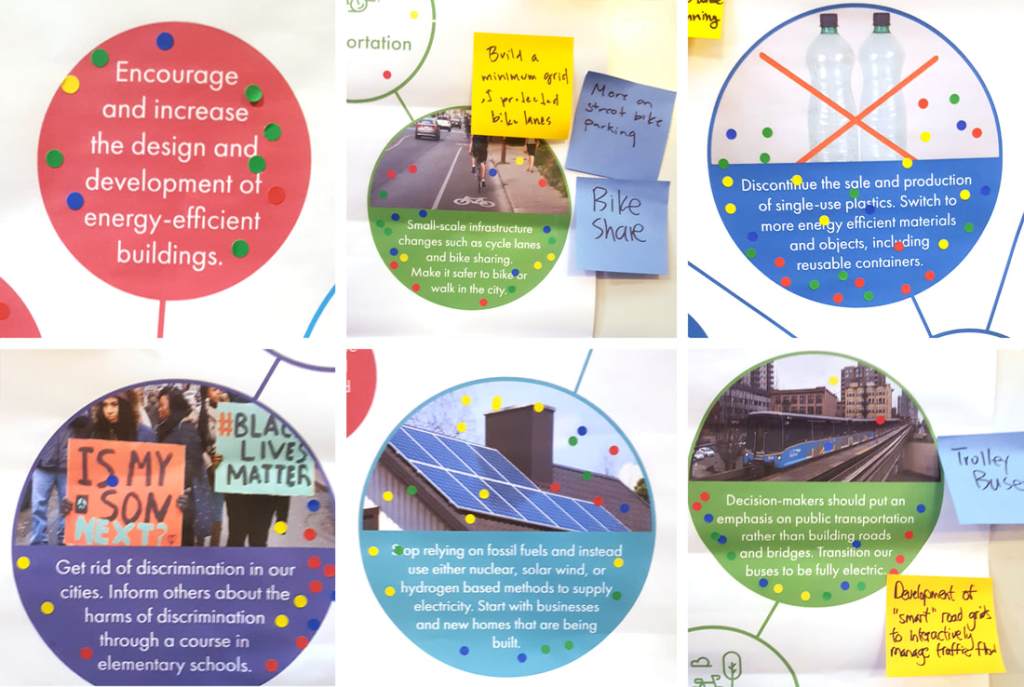 “Future Cities, Future Us” was designed to build a youth-led, intergenerational exchange of ideas with the goal to create a collective, actionable vision of future cities. Ideas were submitted by youth to build a physical and digital display for the 2019 Future Cities Canada Summit and Community Studio at Evergreen Brick Works. City-building professionals and visitors of all ages responded to these ideas and helped inspire our youth to take real action.